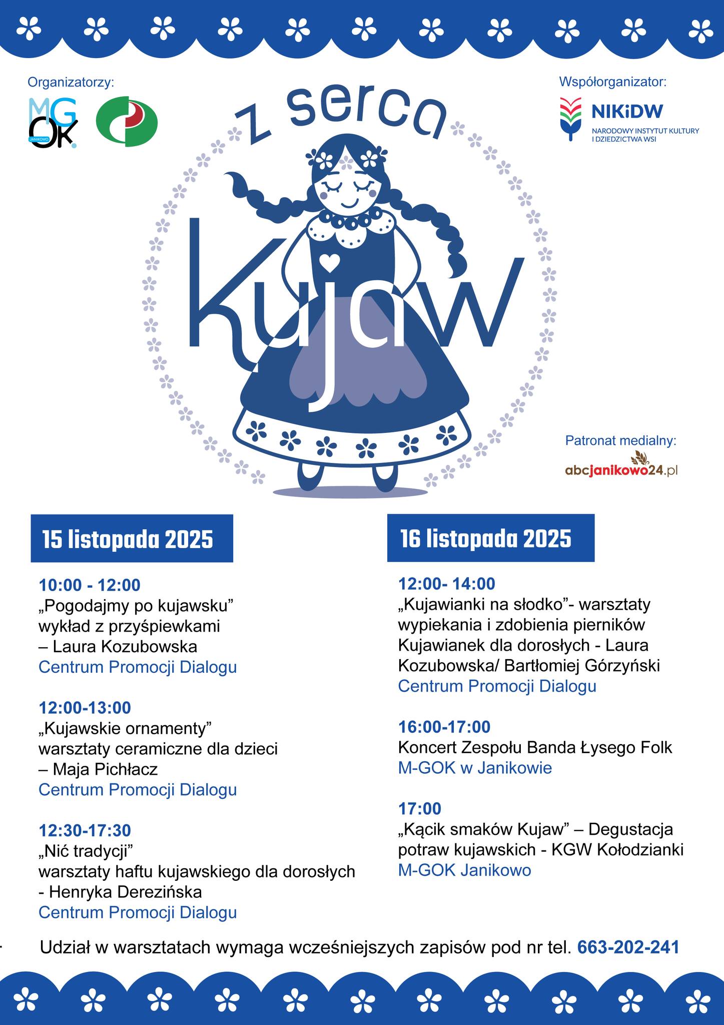 Z serca Kujaw – święto kultury kujawskiej W dniach 15 i 16 listopada 2025 r., dzięki dofinansowaniu z Narodowego Instytutu Kultury i Dziedzictwa Wsi, Centrum Promocji Dialogu we współpracy z Miejsko-Gminnym Ośrodkiem Kultury w Janikowie zrealizuje wyjątkowe wydarzenie kulturalno-edukacyjne, przybliżające bogactwo tradycji Kujaw. W programie znajdzie się m.in. wykład o gwarze kujawskiej połączony z przyśpiewkami …