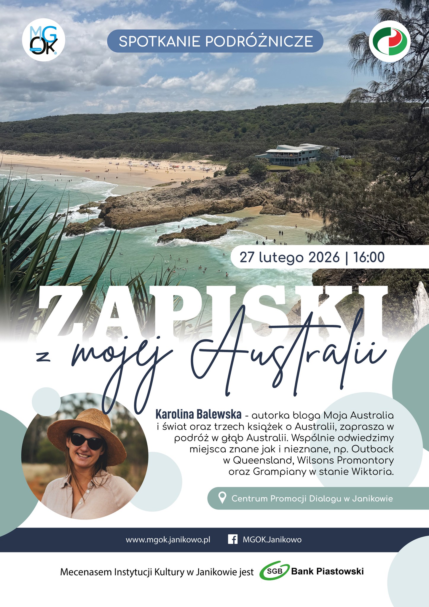 Karolina Balewska to polska autorka, blogerka i podróżniczka, która od 2012 roku na stałe mieszka w Brisbane w Australii. Jest twórczynią popularnego bloga Moja Australia i świat, na którym przybliża realia życia na Antypodach oraz dzieli się praktycznymi wskazówkami dla turystów i emigrantów. Wydała trzy książki, w których opisuje swoją drogę do Australii, proces adaptacji w nowym kraju oraz …