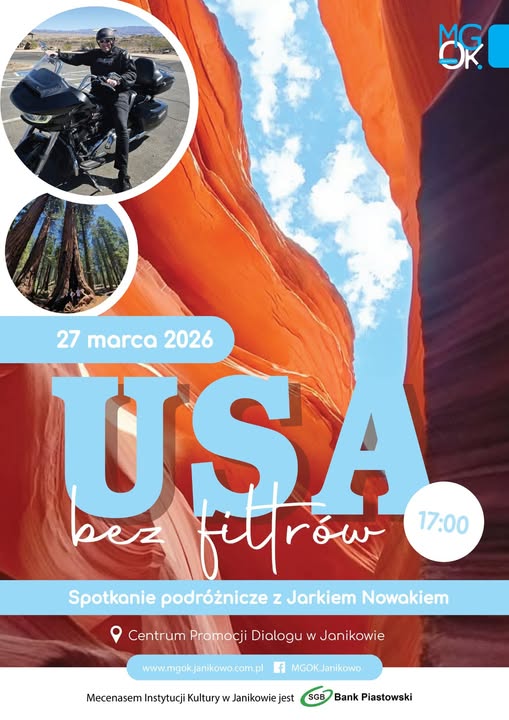 Spotkanie podróżnicze z Jarkiem Nowakiem 27 marca o godz. 17:00. Wyjątkowa podróż przez Stany Zjednoczone. Jarosław Nowak pokaże USA takie, jakie zobaczył naprawdę. Bez filtrów, za to z pasją, humorem i masą inspirujących historii!