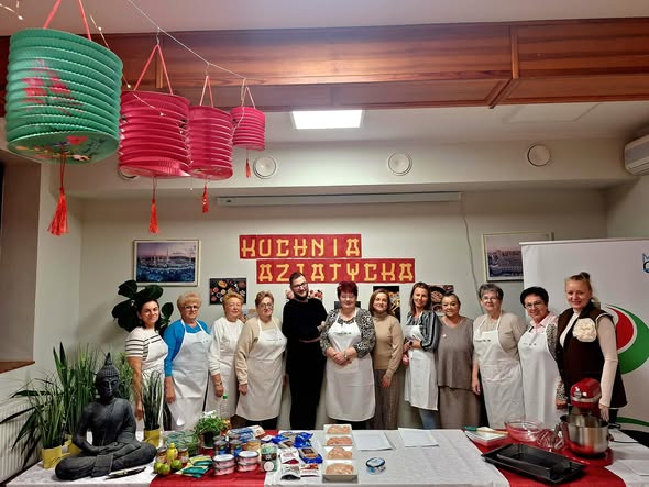 Warsztaty kulinarne z cyklu ” Smaki świata” prowadzone przez Olka Domierackiego- finalistę programu Bake Off – Ale ciacho! Podczas zajęć uczestnicy mieli okazję nauczyć się przyrządzać tradycyjne azjatyckie potrawy: tajską zupę z zielonym curry i kurczakiem oraz sernik japoński.