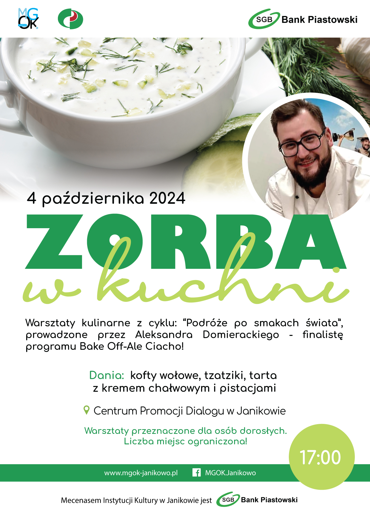 4 października zapraszamy na kolejne spotkanie z cyklu warsztatów kulinarnych z serii ,,Podróże po smakach świata”, które cieszą się dużym zainteresowaniem i niezmiennie przyciągają miłośników dobrego jedzenia. Tym razem uczestnicy wyruszą w smakowitą podróż do słonecznej Grecji, poznając tajniki tradycyjnej kuchni śródziemnomorskiej. Warsztaty poprowadzi finalista programu „Bake Off – Ale Ciacho!”, który podzieli się swoją …